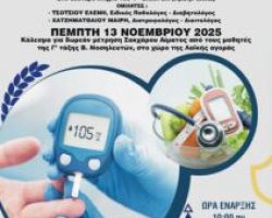 ΕΠΑΛ – ΕΚ ΕΔΕΣΣΑΣ. ΟΜΙΛΙΑ ΓΙΑ ΤΟΝ ΔΙΑΒΗΤΗ –ΔΩΡΕΑΝ ΜΕΤΡΗΣΗ ΣΑΚΧΑΡΟΥ Δωρεάν μέτρηση σακχάρου θα πραγματοποιηθεί από το ΕΠΑΛ και το […]