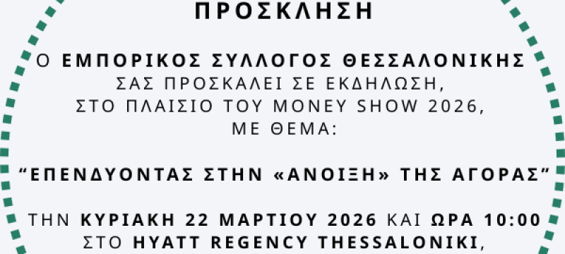 ΠΡΟΣΚΛΗΣΗ Ε.Σ.Θ. σε εκδήλωση με θέμα: “Επενδύοντας στην “‘Ανοιξη” της αγοράς”_Κυριακή 22/03/2026 και ώρα 10 πμ_Hyatt Regency Thessaloniki, αίθουσα REGENCY […]