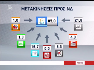 Ενδιαφέρον παρουσιάζουν όμως και οι μετακινήσεις ψηφοφόρων άλλων κομμάτων προς τη ΝΔ και τον ΣΥ.ΡΙΖ.Α. Έτσι, η ΝΔ παρουσιάζει υψηλή συνοχή στο 85%, με τις μεγαλύτερες διαρροές να σημειώνονται από τους Ανεξάρτητους Έλληνες (16,7%), και από ψηφοφόρους άλλων κομμάτων 21,8%. Σημειώνεται ότι σε αυτό το ποσοστό εντάσσονται οι ψηφοφόροι του ΛΑ.ΟΣ., της ΔΗ.ΣΥ. και της Δράση, γεγονός που εξηγείται λόγω των τελευταίων διεργασιών που πραγματοποιούνται στο χώρο της κεντροδεξιάς για τη συγκρότηση ενός ενιαίου μετώπου.