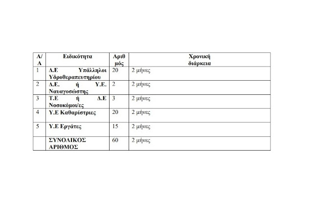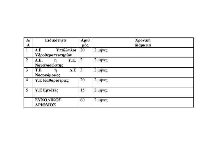 Οι προσλήψεις αφορούν τις παρακάτω ειδικότητες: