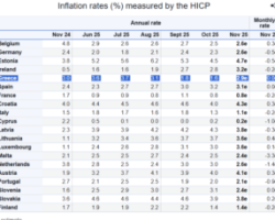 Στο 2,2% διαμορφώθηκε ο ετήσιος πληθωρισμός στην Ευρωζώνη τον Νοέμβριο του 2025, σύμφωνα με τα τελευταία στοιχεία της Eurostat, καταγράφοντας […]