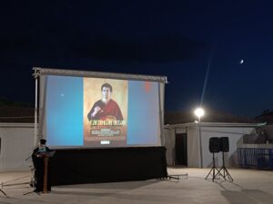 Προ της προβολής, ο προϊστάμενος του Ιερού Ναού Αγίων Αποστόλων Πέτρου και Παύλου Γιαννιτσών, Πρωτοπρεσβύτερος Κυριάκος Χατζηδήμου, αναφέρθηκε στους λόγους υλοποίησης της συγκεκριμένης ταινίας, καθώς ο π. Σωφρόνιος συνδέεται αδελφικά με την Ενορία των Αγ. Αποστόλων, εφόσον εκεί χειροτονήθηκε Διάκονος και Πρεσβύτερος. Έκανε λόγο ακόμη για τον τρόπο που εικονίζεται ο Άγιος Παντελεήμων ως ανάργυρος ιατρός στην ορθόδοξη εικονογραφία, το πώς συνδύασε επιστήμη και πίστη σε ένα σύγχρονο θαύμα του Αγίου δια των Ιερών Λειψάνων του και τέλος ευχαρίστησε τους συντελεστές της ταινίας, καθηκόντως δε τον Δήμαρχο Πέλλας, κ. Φουντουκίδη, τον οποίο εκπροσώπησε η Αντιδήμαρχος Πολιτισμού, κ.Ευφροσύνη Μερεμιτσάκη, για την παραχώρηση του θεάτρου.