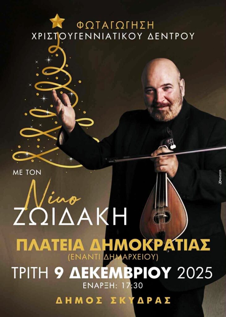 Φωταγώγηση του Χριστουγεννιάτικου Δέντρου στη Σκύδρα με τον μεγάλο καλλιτέχνη Νίκο Ζωιδάκη