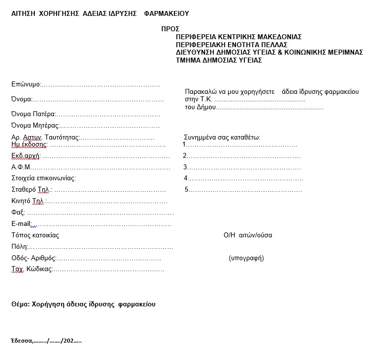 Οι κενές θέσεις για ίδρυση φαρμακείων στην Π.Ε. Πέλλας που προέκυψαν μέχρι 31 Μαΐου 2020, είναι οι παρακάτω: